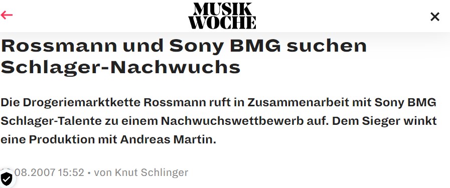 Rossmann und Sony BMG suchen Schlager-Nachwuchs (musikwoche.de)